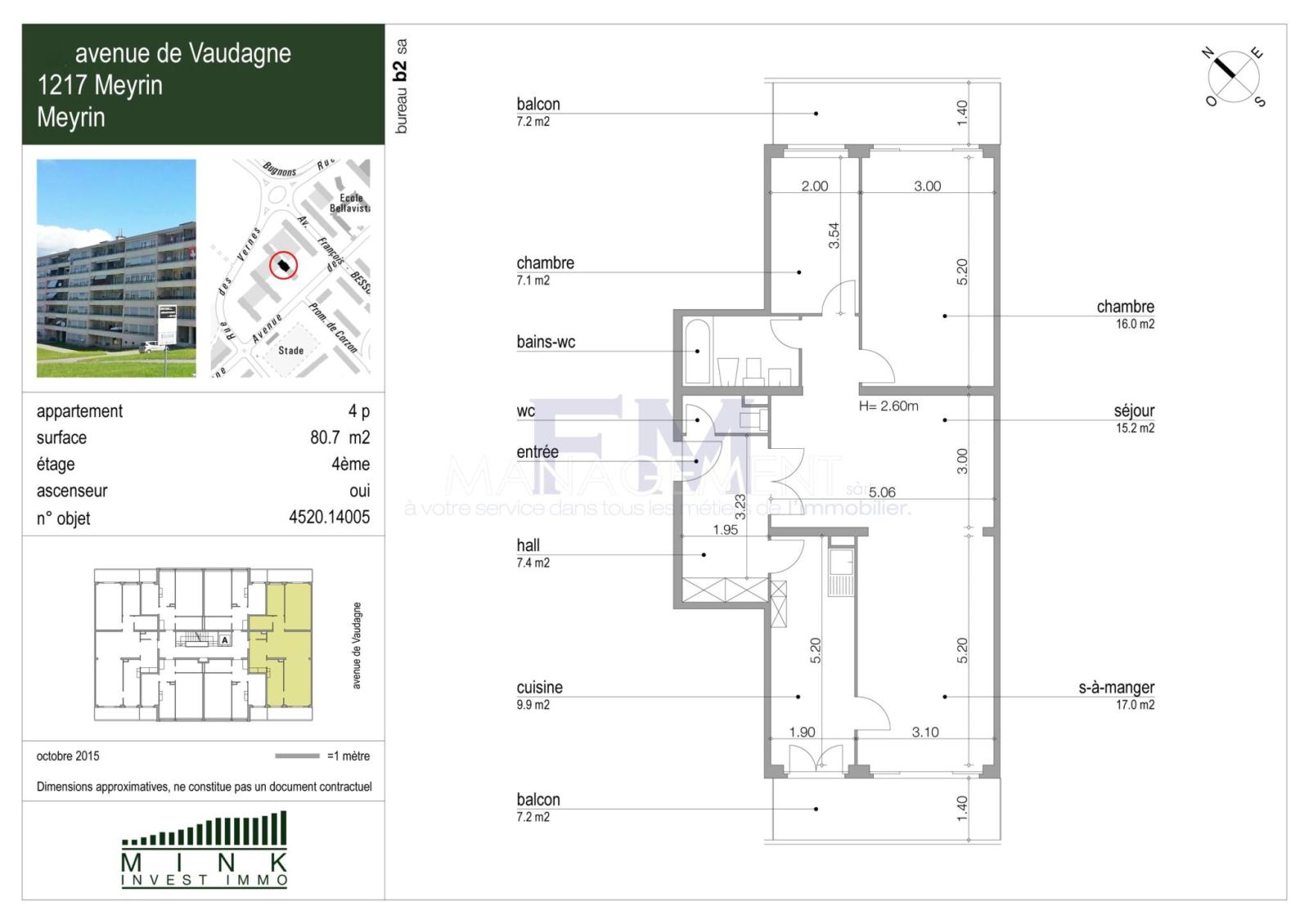 Situé sur la commune de Meyrin, à proximité des commerces et des transports en commun, bel appartement traversant, de 4 pièces et d'env. 81 m2 au 4ème étage d'un immeuble sécurisé.