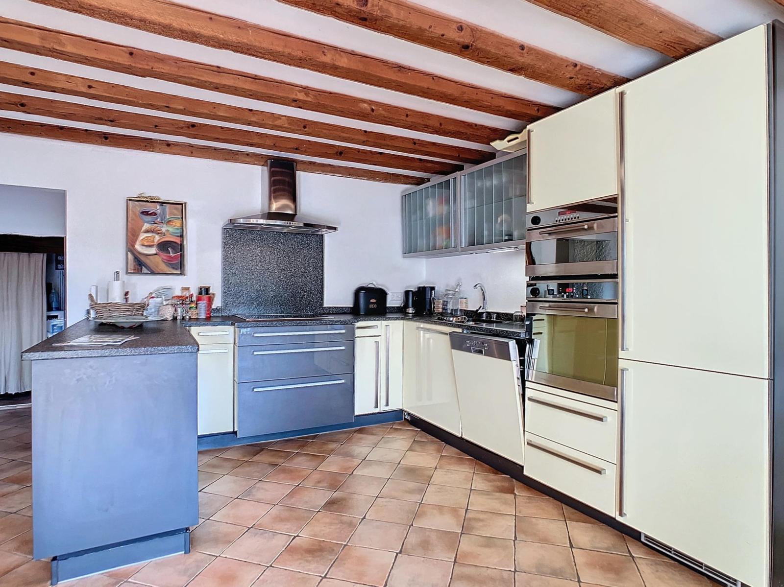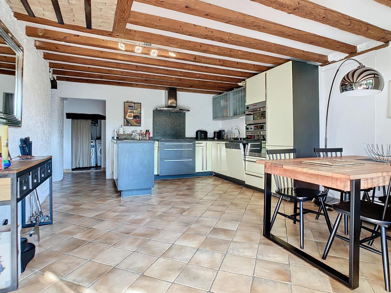 - Entrée dans la cuisine équipée avec espace repas