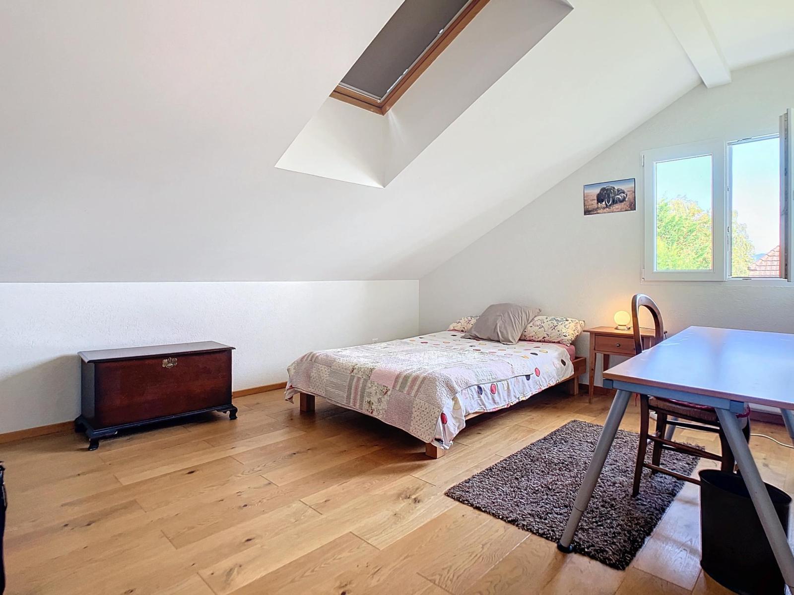 Située dans un quartier résidentiel calme de la commune de Founex, cette maison individuelle profite d'un joli jardin et de places de parking extérieures.