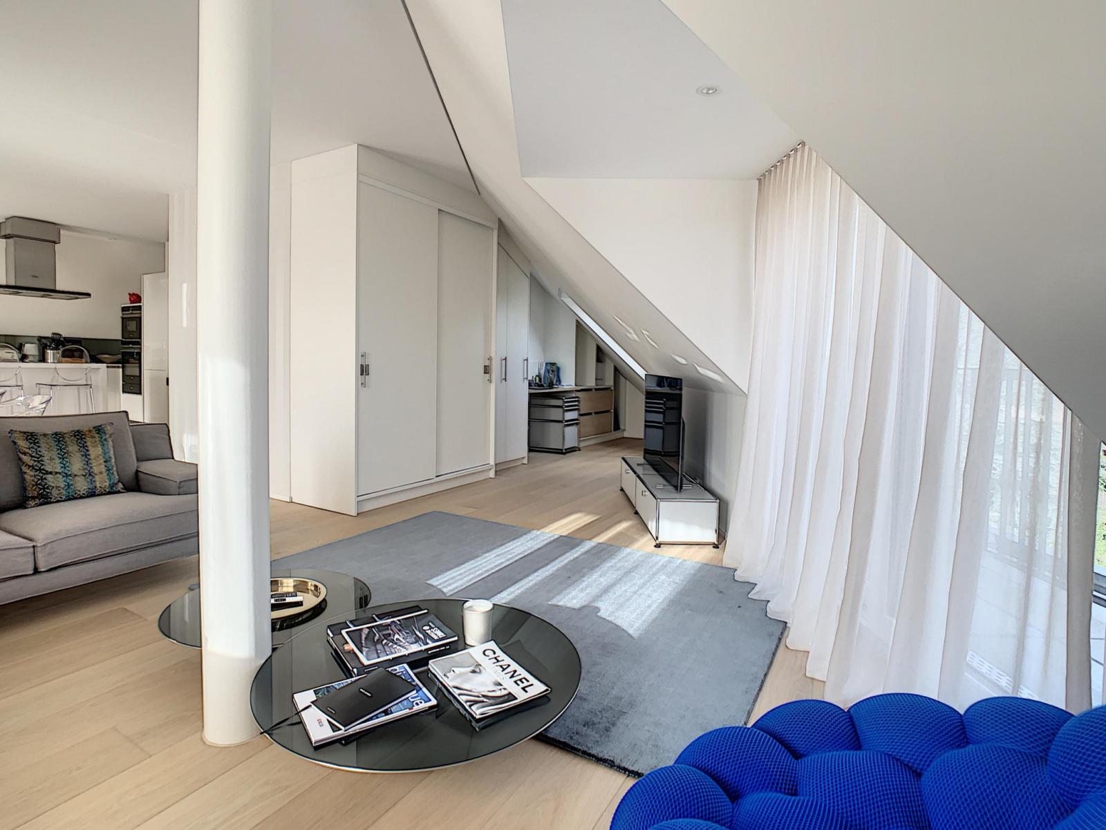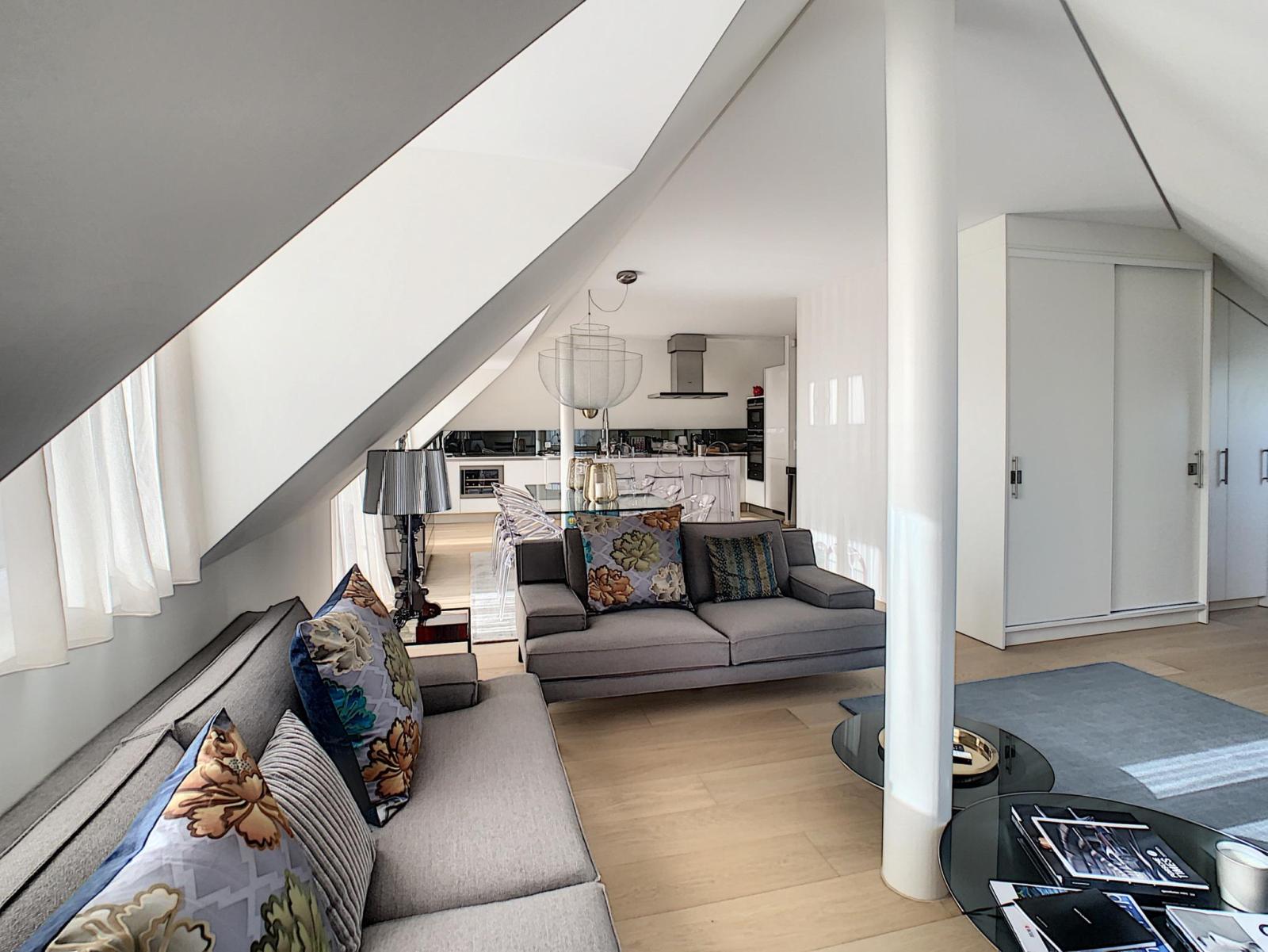 Sublime attique contemporain de 3 pièces, une chambre et un bureau