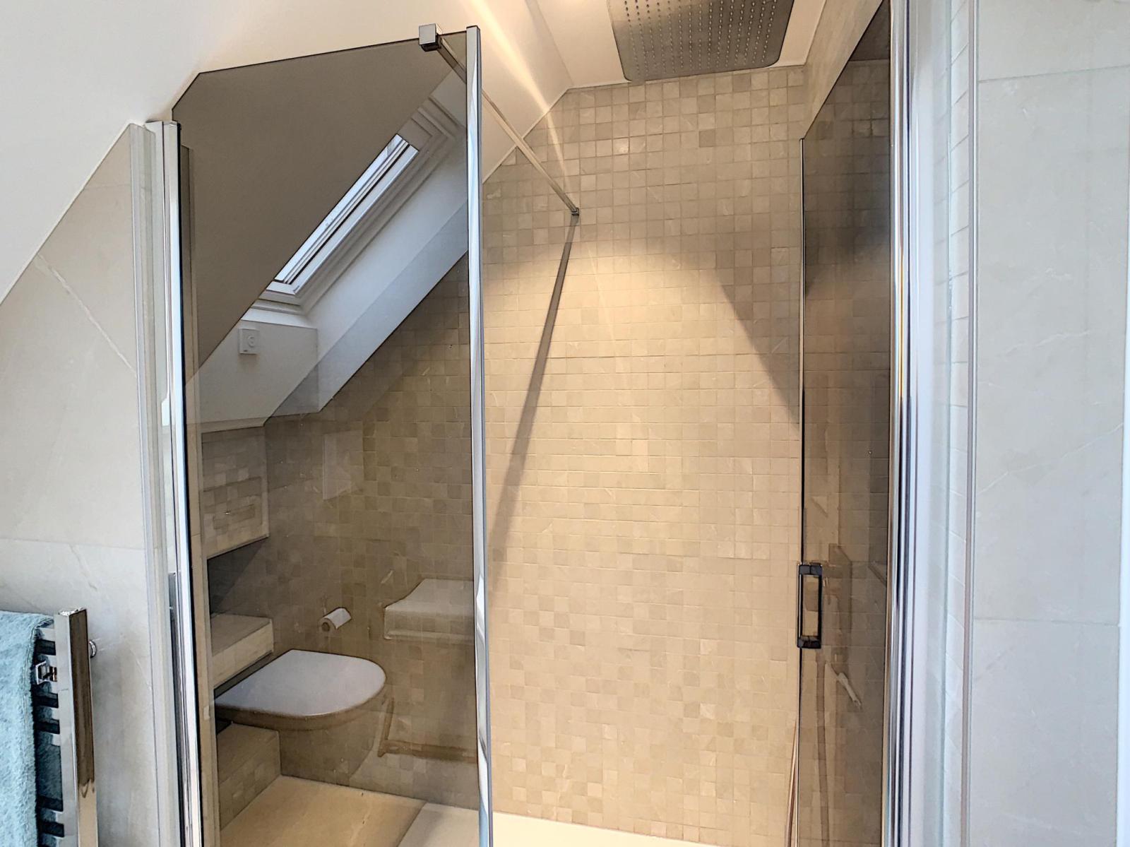 - Chambre à coucher avec dressing sur mesure, salle de douche et accès à une terrasse